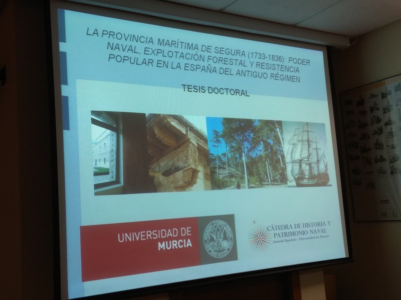 El pasado 19 de octubre de 2018 tuvo lugar, en la Facultad de Letras de la Universidad de Murcia, la defensa de la tesis doctoral titulada «La provincia marítima de Segura (1733-1836): poder naval, explotación forestal y resistencia popular en la España del Antiguo Régimen», de D. Vicente Ruiz García, dirigida por la Dra. Celia Chaín Navarro y el Dr. Juan José Sánchez Baena.
