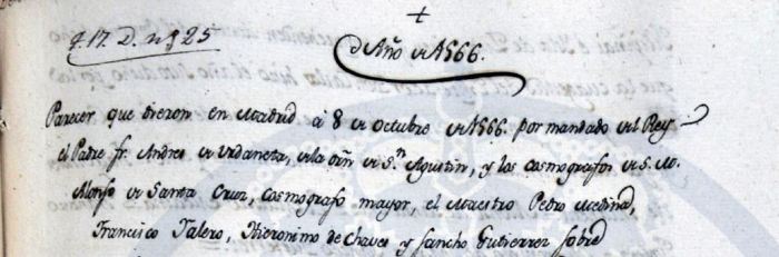 Parecer que dieron en Madrid a 8 de octubre de 1566, por mandado del Rey, el Padre Fray Andrés de Urdaneta, de la Orden de San Agustín; y los cosmógrafos de Su Majestad Alonso de Santa Cruz, cosmógrafo mayor; el maestro Pedro Medina; Francisco Falero; Gerónimo de Chaves y Sancho Gutiérrez sobre si las islas del Maluco, Filipinas y Zebu, pertenecían a la conquista de su Majestad Católica (1566)