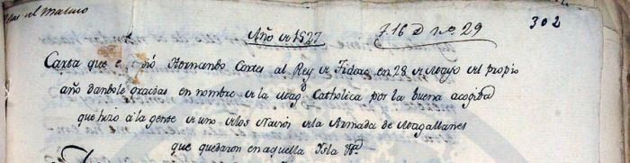 Carta que escribió Hernán Cortés al Rey de Tidore, dándole gracias en nombre del Emperador por la buena acogida que hizo a la gente de la armada de Magallanes que quedó en aquella isla (1527)