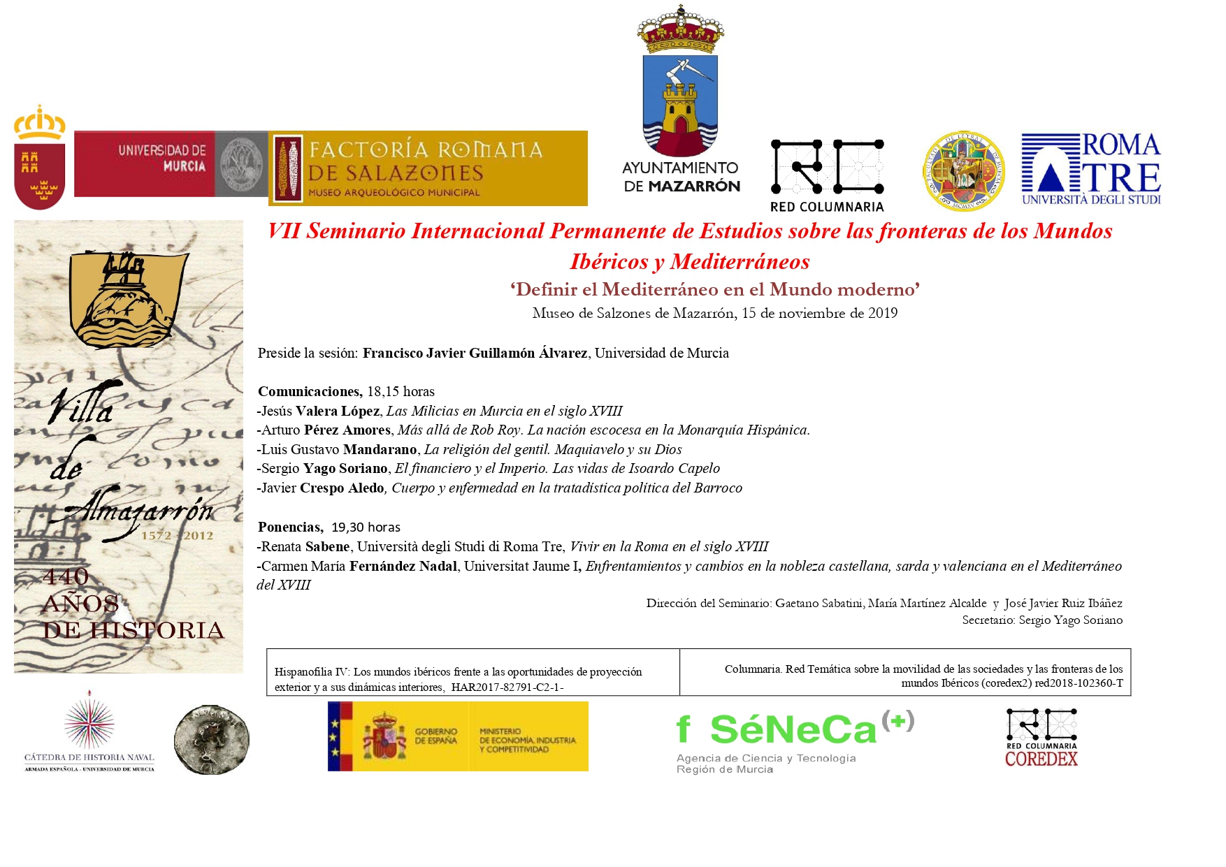 La Cátedra, junto a la Red Columnaria, colabora en el realización del VII Seminario Internacional Permanente de Estudios sobre las fronteras de los Mundos Ibéricos y Mediterráneos: Definir el Mediterráneo en el Mundo Moderno, que se celebrará en el Museo de Salazones de Mazarrón, el 15 de noviembre de 2019, de las 18:15 a las 21:00 h.