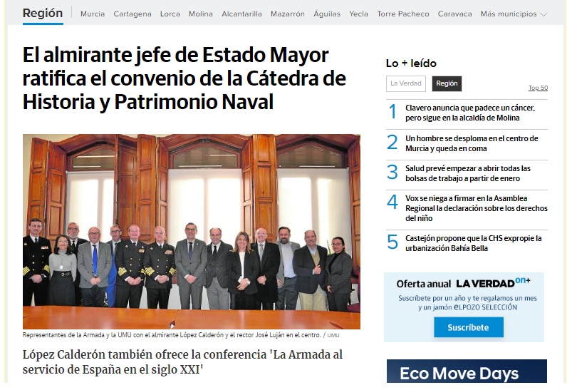 Noticia La Verdad Publicado 22 noviembre, 2019 en 796 × 547 en Acto de firma del nuevo Convenio y ratificación de la Cátedra ← Anterior