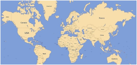 El proceso de representar una superficie esférica en una plana se denomina proyección. Desde tiempos remotos se han usado diferentes proyecciones, que según la técnica empleada puede ser cónica, cilíndrica o acimutal. Es muy frecuente el uso de la cilíndrica, heredada de un cartógrafo llamado Gerard Mercator, que vivió en el siglo XVI. Por ejemplo, los continentes se “estiran” hacia los Polos y se achatan hacia el Ecuador. Así resulta que países como Noruega o Rusia parecen ser más grandes de lo que lo son realmente, mientras que África o Sudamérica parecen más pequeños. De hecho, Groenlandia se representa casi tan grande como África, cuando es mucho más pequeña.