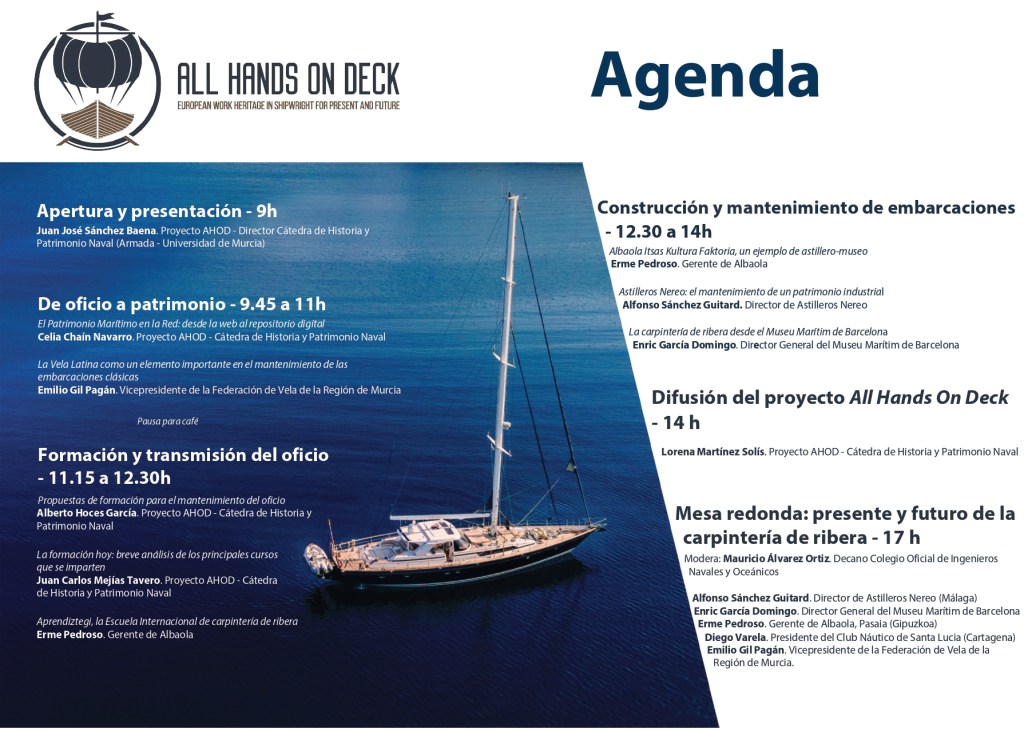 La Universidad de Murcia, a través de la Cátedra de Historia y Patrimonio Naval, ha llevado a cabo el citado proyecto “All hands on deck” (2019-1-ES01-KA204-065201), cuyo acrónimo es AHOD. La expresión que le da título es una orden utilizada a bordo, que significa que todo el mundo es necesario en una determinada situación y actividad.